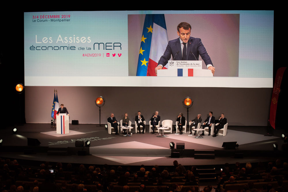 A Montpellier, le 3 décembre, le président de la République, accompagné de trois ministres, Elisabeth Borne (Transition écologique et solidaire), Didier Guillaume (Agriculture et Alimentation) et Annick Girardin (Outre-Mer), a ouvert la 15e édition des Assises de l’économie de la mer par un discours très fort.