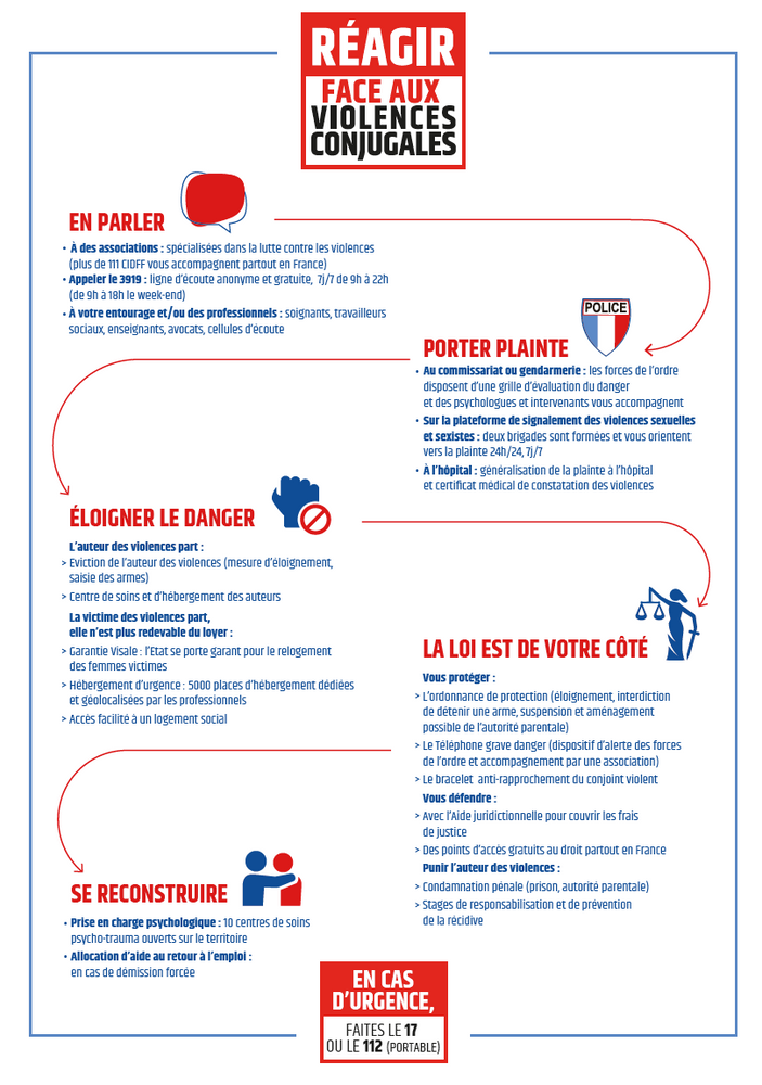A l’occasion du Grenelle des Violence congugales, Marlène Schiappa a souhaité qu’une nouvelle documentation pratique et pédagogique soit produite, diffusée largement, afin d’outiller témoins, victimes et professionnels, comme susciter discussions et prises de conscience.